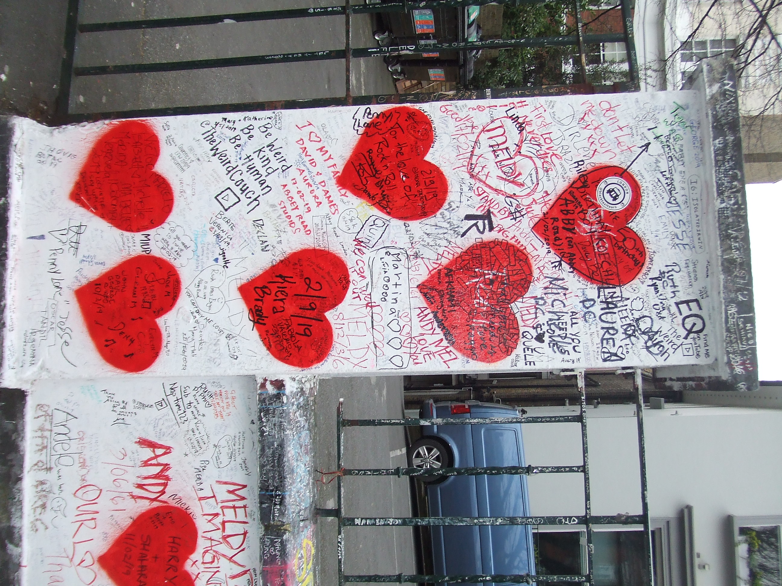 直ぐ近くに録音スタジオがあり、そこへ行くまでの建物の塀には訪れた