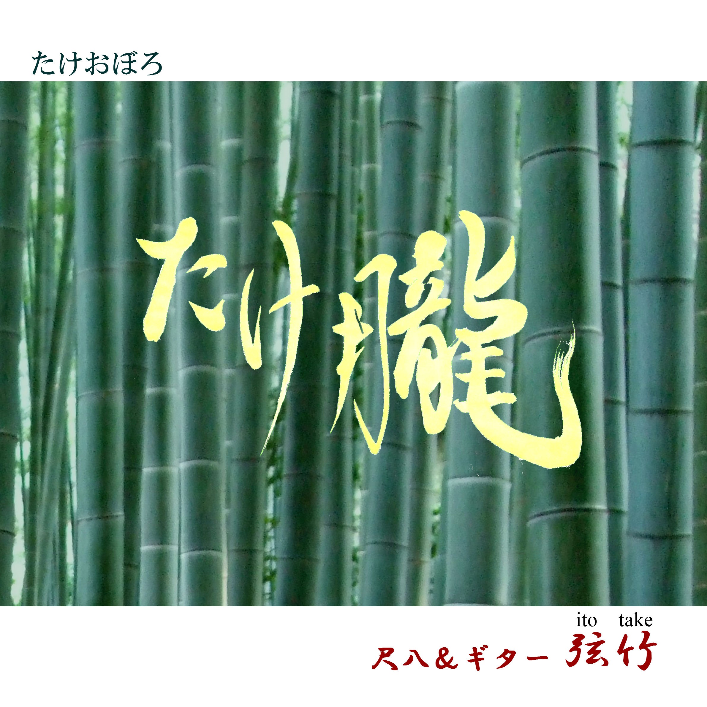 CDタイトルは、初めて作曲家に委嘱して創って戴いた曲の1曲「たけ朧(おぼろ)」です。CDへの収録には金野氏、山城氏と私3人で厳選で選曲しました。まあ、尺八とギターという奇異な(?)アンサンブル、でも、真面な音楽をお楽しみいただきたいです〜!!