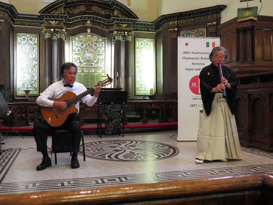 演奏場所は立派な教会で、自然な残響が素晴らしいものでした。尺八や管楽器には最適な環境です。私は、エレ・ガットギターでアンプを使用しました。まあ、我々尺八&ギターのアンサンブルが異国の方々の耳に、どのように伝わるのか? 「民謡や地方芸能、お国自慢のような感じで受け止められやしないか?」と、自分にはプレッシャーがありました。珍しいアンサンブルですから、「果たして、肝心の音楽は?」という、目と耳でチェックされるプレッシャーです。芸の世界とは違いますからネ~ 芸は見せるもの、音楽は聴衆との心や想いの音での相互理解です。綻んだアンサンブルは、「あれ~?」と相互理解のネックを生みます。そう、厳しい世界なんです、音楽の世界は~ 甘い誤魔化しは厳禁です~! だから、悔しい、ちょっとしたミスが~!!