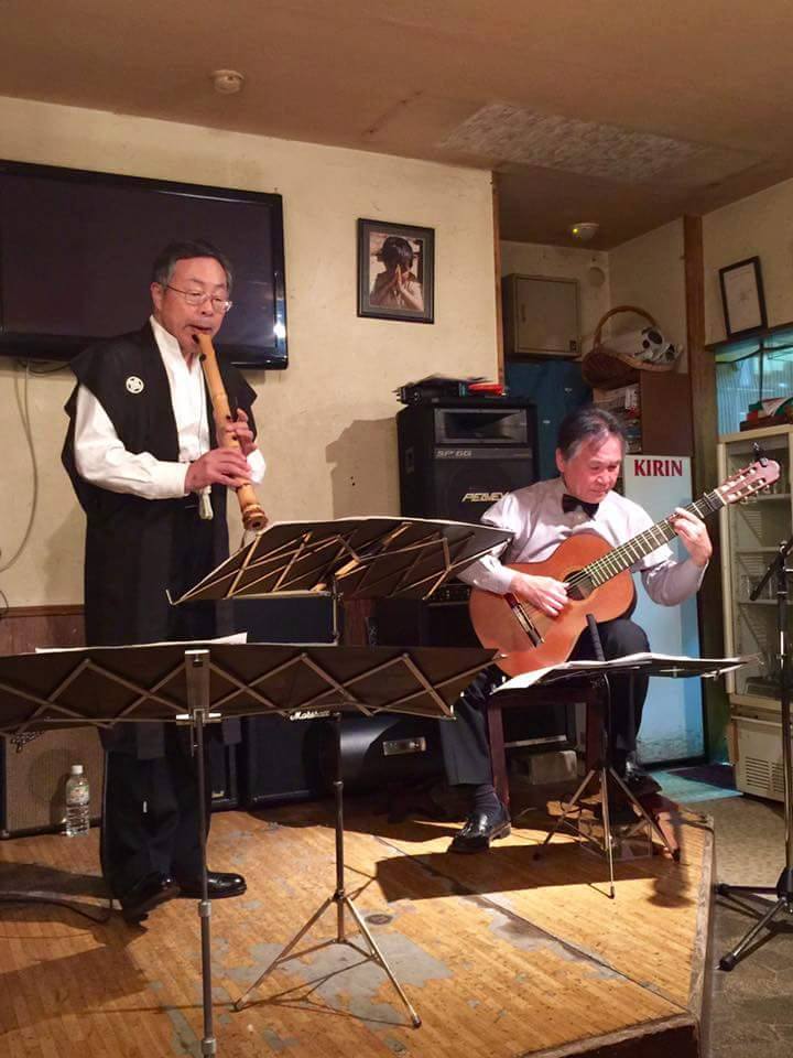 以後、尺八とのデュオにて地域の老人ホーム慰問、学校、病院などへ積極的な演奏活動を行う。