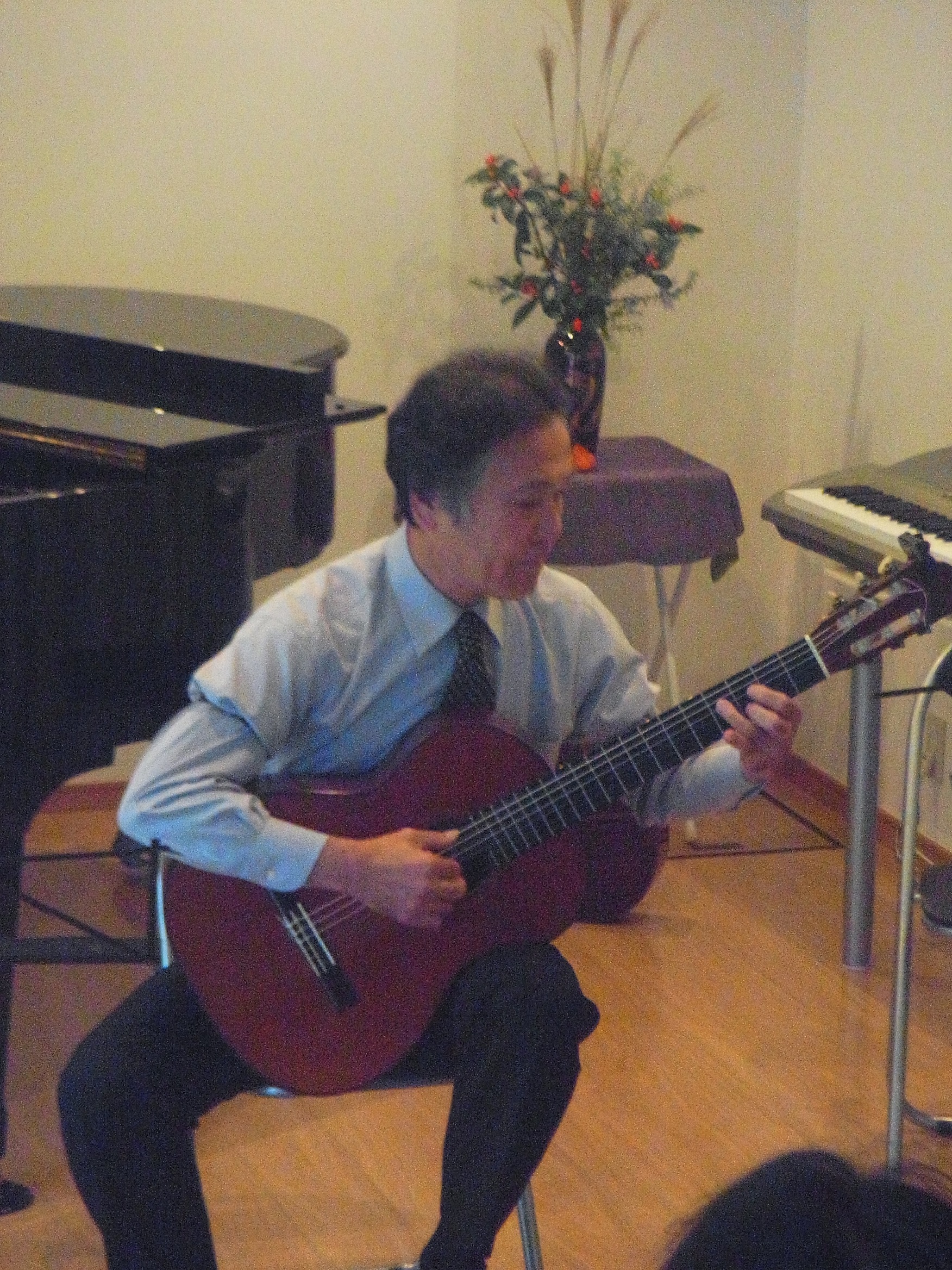 オーナーの吉岡さんは大の大の音楽好き!ご自宅スタジオでお仲間の方々と音楽を楽しんでいらっしゃいます。そんな仲間の方々とのアンサンブルの年1回の発表会が「さゆコン」のスタートということでした。吉岡さんご自身は、リコーダー、チェロ、ピアノ、そして二胡と様々な楽器を演奏されます。ですから、本コンサートはアンサンブルが主で、リコーダーの尾崎さんと私のギターの各独奏はコンサートに花を添える形でした。