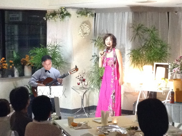 先の船橋アリーナでのロビ・コンの前日、13日、そうそう台風19号で大変な雨の降った夜のライヴをご紹介します。PHOTOをごらん頂いてお判りでしょう、そう、キレイな女性ヴォーカリストの伴奏をしてまいりました。新京成線「初富」駅から徒歩2分くらいの近いところです、昨年オープンした天然石ジュエリーのお店「アトリエAMI」の1周年記念謝恩ライヴの一コマです。このお店のオーナー、白川さんのご依頼でのこの度の演奏となりました。歌の好きな素人さんの女性か?と、軽い気持ちで受けましたが、いやいやどうして、セミ・プロの竹下さんでした。都内のライヴ・スポットでもよく歌っていらっしゃる、とのこと。そういう方でしたんで、打ち合わせもトントン拍子で、本番に臨めました。オーナー白川さんのご依頼で、私のギター独奏も数曲披露しました。竹下さんの歌、そして私の独奏曲&歌(エ~ッ?)など、下記の通りです。