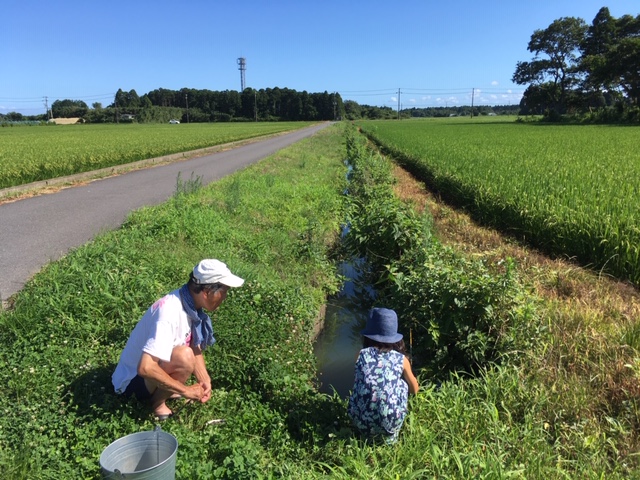 住んでいる家の周りの緑色の田んぼの中の用水路が気になって仕方あり